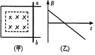 3、选择题 水平放置的U形光滑金属导轨上放置一金属棒ab,甲图中的矩形区域内存在一有界匀强磁场,规定垂直纸面向里为磁场正方向。现使该磁场按乙图所示的规律变化,则下列判断正确的是