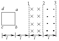 (2)当ab边刚越过中界线2和边界线3的中间位置时,线框又恰好受力平衡,设这时的速度为v’,则4B2l2v’/R=F,这说明v’=v0/4.