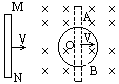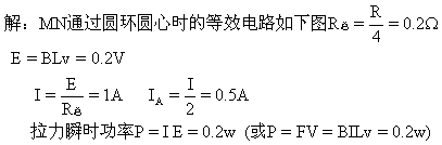 .圆环放在B=0.2T的匀强磁场中,方向、位置如图,电阻可以不计的直导线MN,在拉力作用下以速度v=5m/s匀速向右滑过圆环.滑动过程中二者接触良好,且无摩擦,求导线MN通过圆环圆心位置时,圆环上A处的电流和拉力的瞬时功率.