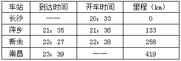 1、简答题 列车第六次大提速后,出现了“动车组列车”。观察D206次列车时刻表,请你指出从长沙到南昌的旅客可以从时刻表中获得哪些信息?(写出五条信息即可)