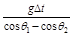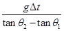 3、选择题 水平抛出一小球,t秒末速度方向与水平方向的夹角为θ1,(t+Δt)秒末速度方向与水平方向的夹角为θ2,忽略空气阻力作用.则小球的初速度是(?)