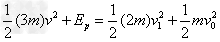 由动量守恒定律有mv1=2mv2,解得v2=v1=