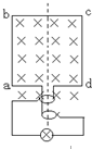 5、简答题 电机转子是边长为0.2米的正方形,线圈匝数为100匝,内阻8欧,初始位置如图所示,以ad、bc中点连线为轴用600转/分的转速在