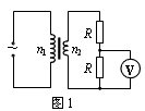 3、选择题 图1中的变压器为理想变压器,原线圈的匝数n1与副线圈的匝数n2之比为10 : 1。变压器的原线圈接如图2所示的正弦式电流,两个20Ω的定值电阻串联接在副线圈两端。电压表V为理想电表。则