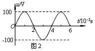 1、选择题 如图,是某种正弦式交变电压的波形图,由图可确定该电压的( ? )