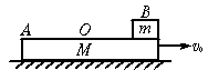 3、简答题 如图所示,质量为M,长为L的木板(端点为A、B,中点为O)在光滑水平面上以v0的水平速度向右运动,把质量为m、长度可忽略的小木块置于B端(对地初速度为0),它与木板间的动摩擦因数为μ,问v0在什么范围内才能使小木块停在O、A之间?