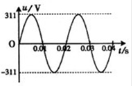 3、选择题 家庭中用的取暖器,正常工作时所用电压是按照图中正弦规律变化的交流电,取暖器正常工作时的电流是3A。下列表述正确的是