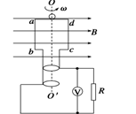1、计算题 如图8所示,匀强磁场的磁感应强度B=0.5 T,边长L=10 cm的正方形线圈abcd共100匝,线圈电阻r=1 Ω,线圈绕垂直于磁感线的对称轴OO′匀速转动,角速度ω=2π rad/s,外电路电阻R=4 Ω. 试求: