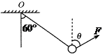 2、选择题 如图所示,一小球用轻绳悬于O点,用力F拉住小球,使悬线保持偏离竖直方向60°角,且小球始终处于平衡状态。为了使F有最小值,F与竖直方向的夹角θ应该是