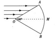5、选择题 如图所示.AOB为透明扇形玻璃砖,圆心角