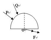 3、选择题 如图所示,两束不同的单色光P和Q,射向半圆形玻璃砖,其出射光线都是从圆心O点沿OF 方向,由此可知:(?)