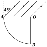 的玻璃柱体,其横截面是圆心角为90°、半径为R的扇形OAB.一束平行光平行于横截面,以45°入射角照射到OA上,OB不透光.若只考虑首次入射到圆弧