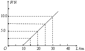4、实验题 在做“探究弹力与弹簧伸长关系”的实验时,将一轻弹簧竖直悬挂,让其自然下垂,测出其自然长度;然后在其下端悬挂钩码,测出弹簧的总长度;改变钩码个数,测出几组数据。实验过程中没有超过弹簧的弹性限度。作出钩码重力F与弹簧的总长度L的关系图象,如图所示。由图可知:该弹簧的自然长度为_____________cm,劲度系数为_____________N/m。