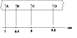 3、实验题 在测定匀变速直线运动的实验中,打点计时器打出一纸条,每隔四个点选出一个计数点共选出A、B、C、D四个计数点,所用交流电频率为50赫兹,纸带上各点对应尺上的刻度如图所示,则: