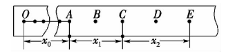 5、实验题  (9分)在“验证机械能守恒定律”的实验中,打点计时器接在电压为U、频率为f=50Hz的交流电源上,在实验中得到一条理想纸带,如图所示.选取纸带上打出的连续5个点A,B,C,D,E,测出A点距起始点O的距离为x0 =4.70cm,点A、C间的距离为x1=4.51cm,点C、E间的距离x2="6.02" cm已知重物的质量为m=l.00kg,当地的重力加速度为g= 9.80 m/s2,则