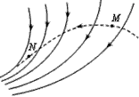 2、选择题  图中的实线表示电场线,虚线表示只受电场力作用的带电粒子的运动轨迹。粒子先经过M点,再经过N点.可以判定?