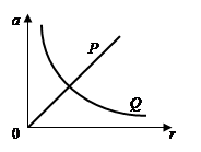 4、选择题 如图所示为质点P、Q做匀速圆周运动的向心加速度随半径变化的图线。表示质点P的图线是过原点的一条直线,表示质点Q的图线是双曲线。由图线可知( )
