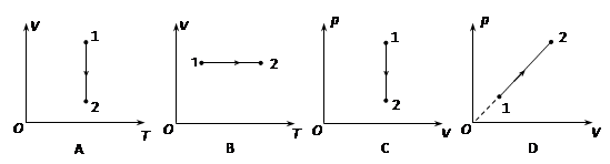 4、选择题 一定质量的理想气体,沿箭头方向由状态1变化到状态2,气体内能增加的变化过程是
