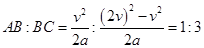 5、选择题 如图所示,一小球从A点由静止开始沿斜面做匀变速直线运动,若到达B点时速度为v,到达C点时速度为2v,则AB:BC等于 ( )