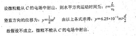 小题2:若开关S断开时,有一带电微粒沿虚线方向以v0="2.0" m/s的初速度射入C的电场中,能否从C的电场中射出?(要求写出计算和分析过程,g取10m/s2)