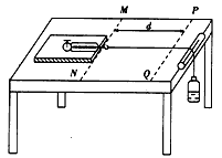 1、实验题 某同学设计了如图所示的装置来探究加速度与力的关系弹簧秤固定在一合适的木板上,桌面的右边缘固定一支表面光滑的铅笔以代替定滑轮,细绳的两端分别与弹簧秤的挂钩和矿泉水瓶连接。在桌面上画出两条平行线MN、PQ, 并测出间距d开始时将木板置于MN处,现缓慢向瓶中加水,直到木板刚刚开始运动为止,记下弹簧秤的示数F0,以此表示滑动摩擦力的大小,再将木板放回原处并按住,继续向瓶中加水后,记下弹簧秤的示数F1,然后释放木板,并用秒表记下木板运动到PQ处的时间t。