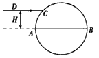 3、计算题 如图所示,透明介质球的半径为R,光线DC平行直径AB射到介质球的C点,DC与AB的距离H=0.8R。