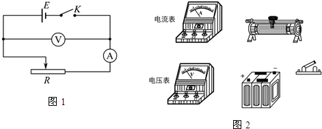 4、简答题 测量电源的电动势及内阻的实验电路如图1所示.图2中给出的器材有:待测的电源(电动势约为4V,内阻约为2Ω),电压表(内阻很大,有5V、15V两个量程),电流表(内阻不计,有0.1A、1A两个量程),滑线变阻器(阻值范围0-10Ω),开关.另有导线若干.试按照图1中的电路在图2中画出连线,将器材连接成实验电路(要求正确选择电表量程,以保证仪器的安全并使测量有尽可能高的精确度).