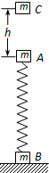 3、简答题 如图所示,质量均为m的两物体A.B分别与轻质弹簧的两端相连接,将它们静止放在地面上.一质量也为m的小物体C从距A物体h高处由静止开始下落.C与A相碰后立即粘在一起向下运动,以后不再分开.当A与C运动到最