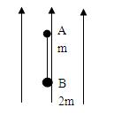 1、计算题 如图所示,电荷量均为+q、质量分别为m和2m的小球A和B,中间连接质量不计的细绳,在竖直方向的匀强电场中以速度