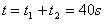 4、计算题  汽车进站关闭发动机做匀减速直线运动,当滑行x1=30m时,速度恰好减为初速度的一半,接着又滑行了t2=20s才停止。求:汽车关闭发动机时的速度v0和滑行的总时间t。