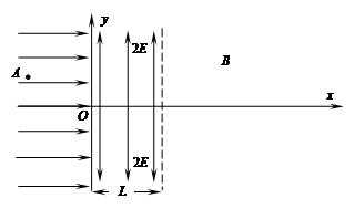 ⑵粒子进入偏转电场后作类平抛运动,设其运动时间为t,在x方向上有:L=v0t