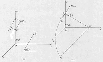 (2)当电场力方向与洛伦兹力方向垂直时,场强有最小值。