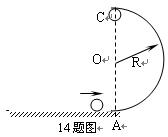 4、选择题 一光滑水平地面上静止放着质量为m、半径为R的光滑圆弧轨道,质量也为m小球从轨道最左端的A点由静止滑下(AC为水平直径),重力加速度为g,下列正确的是(?)
