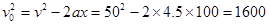 由位移速度关系式得:v2=2ax? ②