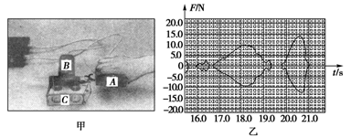 2、实验题  探究作用力与反作用力关系的实验装置如图甲所示,其中A、B是两个力传感器,B固定在木块C上。