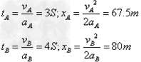 5、计算题 在一次警车追击劫匪车事件中,劫匪车在前,警车在后,两者相距162.5m,两车同时由静止向同一方向匀加速直线行驶,已知警车的加速度为aA=15m/s2,最高时速为vA=45m/s;劫匪车的加速度为aB=10 m/s2,最高时速为vB=40m/s,求经过多长时间警车追上劫匪车?