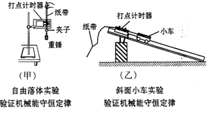 3、实验题 “验证机械能守恒定律”的实验可以采用如图所示的(甲)或(乙)方案来进行。