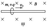 4、选择题 (2010·湖南省师大附中月考)一带电粒子以初速度v0沿垂直于电场线和磁感线的方向,先后穿过宽度相同且紧邻在一起的有明显边界的匀强电场(场强为E)和匀强磁场(磁感应强度为B),如图甲所示.电场和磁场对粒子做功为W1,粒子穿出磁场时的速度为v1;若把电场和磁场正交叠加,如图乙所示,该粒子仍以初速度v0穿过叠加场区,电场和磁场对粒子做功为W2,粒子穿出场区时的速度为v2,比较W1和W2、v1和v2的大小(v0<E/B,不计重力) ( )