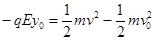 根据牛顿第二定律: 在0点:qv0B-qE = ma? ⑧(2分)