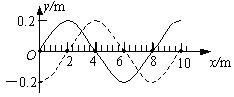 2、计算题 (9分)一列简谐横波在x轴上传播,在t1=0和t2=0.05s时,其波形图分别用如图所示的实线和虚线表示,求: