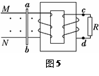 2、选择题 如图5所示,两个线圈套在同一个铁芯上,线圈的绕向在图中已经标出。左线圈连着平行导轨M和N,导轨电阻不计,在导轨垂直方向上放着金属棒ab,金属棒处在垂直于纸面向外的匀强磁场中。下列说法中正确的是( )?