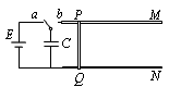 1、选择题  光滑平行金属导轨M、N水平放置,导轨上放置着一根与导轨垂直的导体棒PQ。导轨左端与由电容为C的电容器、单刀双掷开关和电动势为E的电源组成的电路相连接,如图所示。在导轨所在的空间存在方向垂直于导轨平面的匀强磁场(图中未画出)。先将开关接在位置a,使电容器充电并达到稳定后,再将开关拨到位置b。导体棒将会在磁场的作用下开始向右运动,设导轨足够长。则以下说法中正确的是