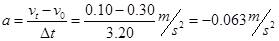 小题2:根据匀变速加速度公式:,所以加速度大小为0.063 m/s