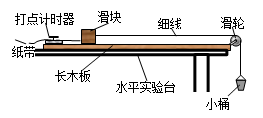 3、实验题  为了验证动能定理,某学习小组在实验室组装了如图的装置外,还备有下列器材:打点计时器所用的学生电源、导线、复写纸、天平、细沙.他们称量滑块的质量为M、沙和小桶的总质量为m.当滑块连接上纸带,用细线通过滑轮挂上空的小桶时,滑块处于静止状态.要完成该实验,则: