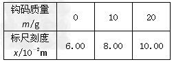 ⑵在弹簧下端挂上钩码,当分别悬挂10g、20g钩码时,记下指针所指的标尺刻度;