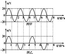 C、D、图乙所示电压的最大值为20V,根据有效值的定义,有: