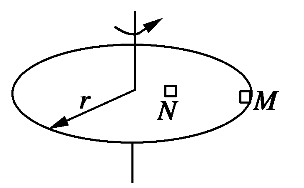 2、选择题 如图所示,一个匀速转动的半径为r的水平圆盘上放着两个小木块M和N,木块M放在圆盘的边缘处,木块N放在离圆心