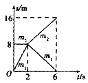 5、计算题 质量为m1=2kg的物体与质量为m2(具体数值未知)的物体在光滑水平面上正碰,碰撞时间忽略不计,其位移-时间图像如图所示问: