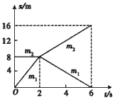 5、选择题 质量分别为m1、m2的小球在一直线上做弹性碰撞,它们在碰撞前后的位移一时间图像如图所示,若m1=1 kg,m2的质量等于