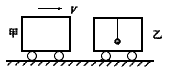 1、填空题 甲、乙两辆完全一样的小车处于光滑水平面上,质量都是M,乙车内用绳吊一质量为0.5M的小球。当乙车静止时,甲车以速度v与乙车相碰,碰后连为一体,则刚碰后瞬间两车的共同速度为_____________。